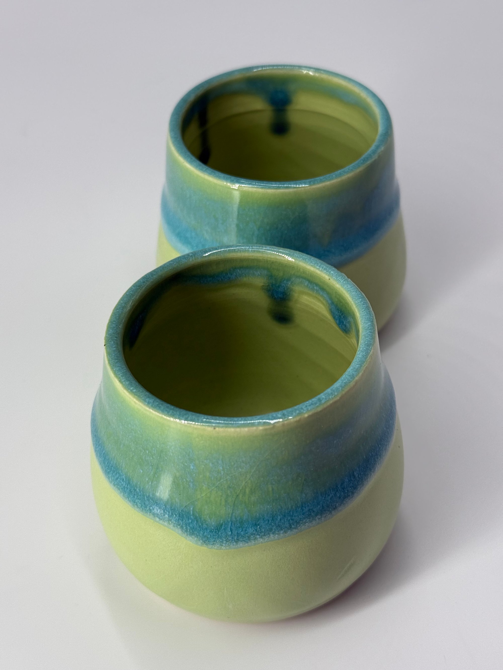- Handmade from white clay with a light green base glaze