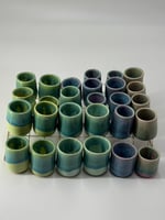- Handmade from white clay with a base glaze of green, blue, purple, pink, or black.