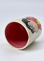 - Hand-painted ceramic cup featuring Steven Universe and Lion inside a box, both in full color, capturing their iconic personalities and whimsical charm. A vibrant, playful piece that celebrates your favorite Crystal Gems duo.
